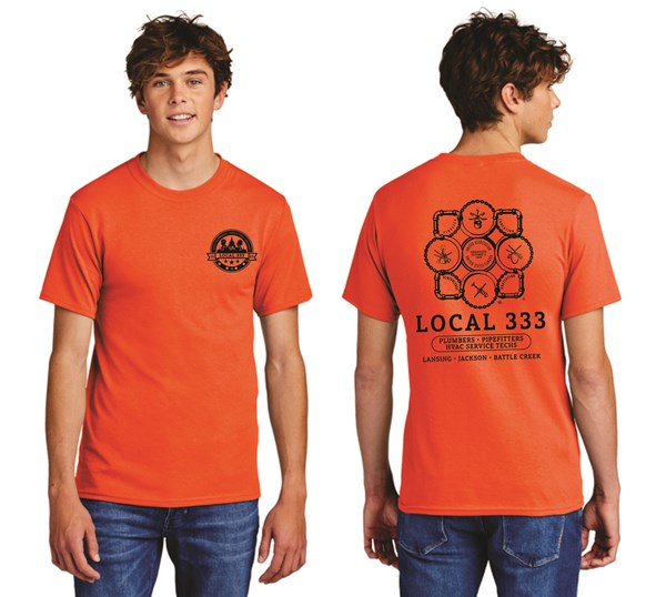 5.4 oz., 50% cotton / 50% polyester, 20/1 Open-end yarn Full cut specs Taped shoulder-to-shoulder Two-needle sleeve and bottom hem MADE IN USA