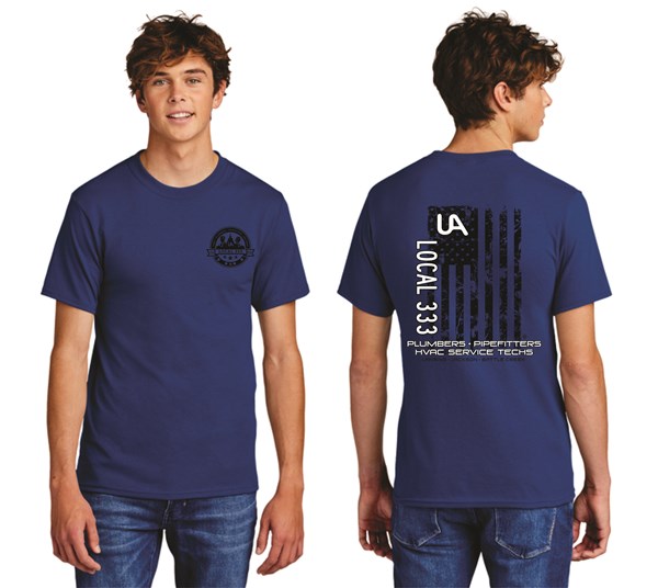 5.4 oz., 50% cotton / 50% polyester, 20/1 Open-end yarn Full cut specs Taped shoulder-to-shoulder Two-needle sleeve and bottom hem MADE IN USA